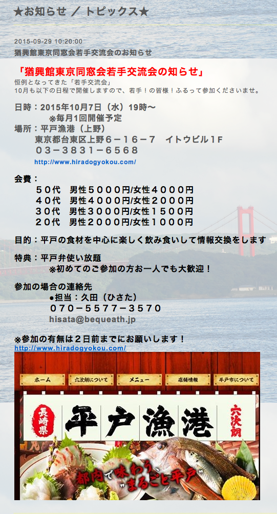 「猶興館東京同窓会若手交流会の知らせ」のお知らせ #1